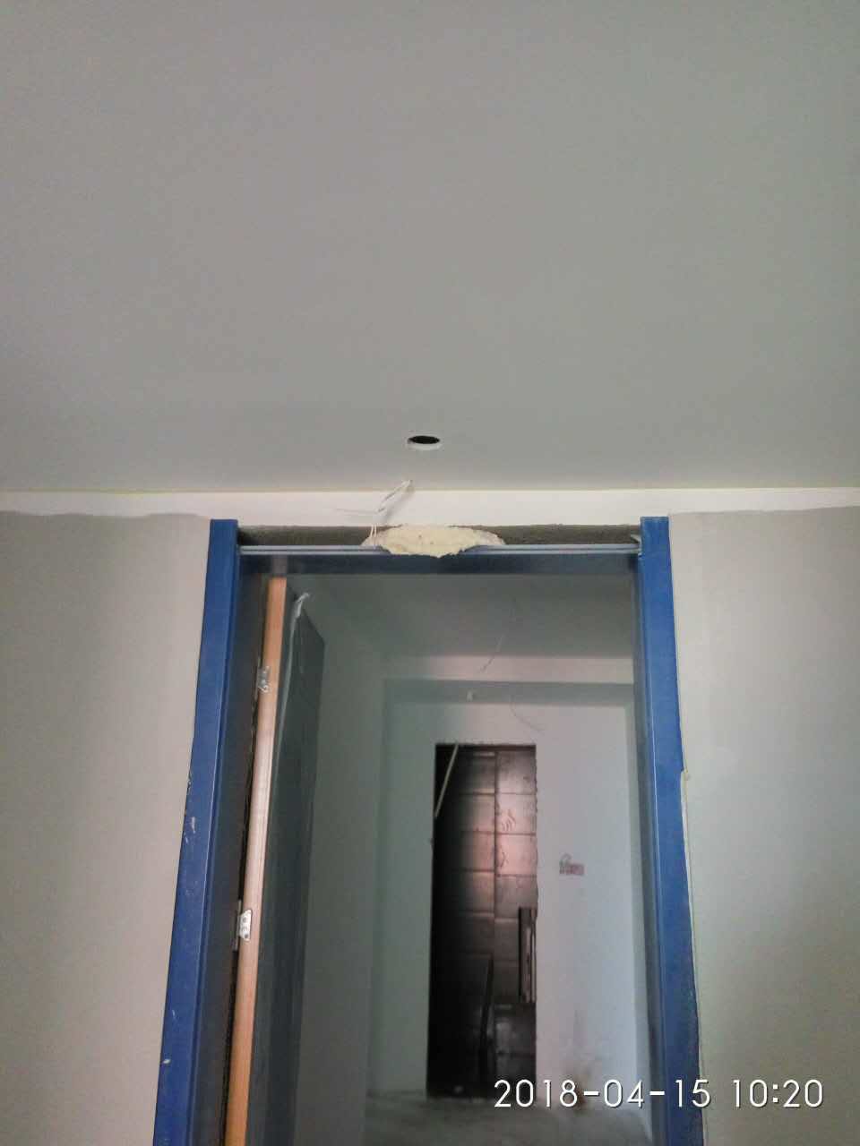 2018年4月15日榆次工地門洞尺寸大小不一,我們工人師傅正在邊裝門邊修繕門洞邊緣的不足。